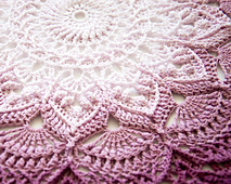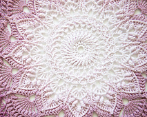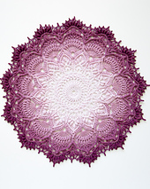 The pattern consists of 32 rounds. Finished piece will be about 32 cm in diameter from point to point after blocking.