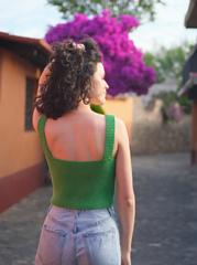 This simple, square neck tank is knit from the bottom up in garter stitch with your choice of working in the round with subtle side seam detailing or flat and seaming it as the final step. Easily customizable by adjusting the length of the body or straps, it’s time to make yourself a gushy summer tank top!!