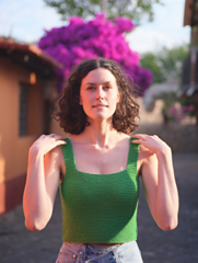 *This garment is meant to be worn with 4-12” / 10-30.5 cm of negative ease. I recommend the lower end of the size range to aim for 4-8” / 10-20 cm of negative ease, and the upper end of the size range to aim for 8-12” / 20-30.5 cm of negative ease. I am pictured wearing the size Small with 5” / 13 cm of negative ease.*