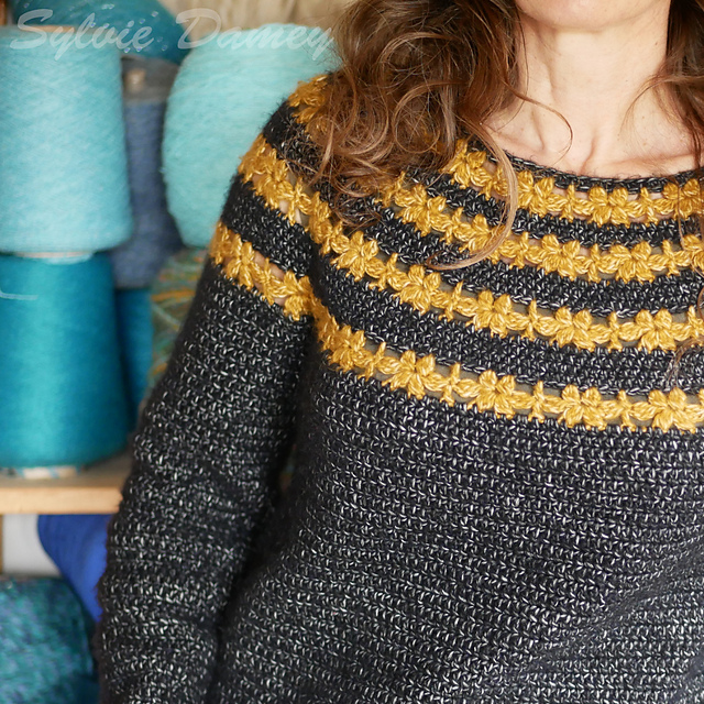 *Un super pull à empiècement rond crocheté d'une seule pièce en partant de l'encolure,