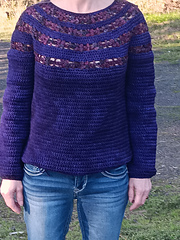 A fantastic top down yoke sweater, with all the shaping cleverly hidden inside the flower motifs.