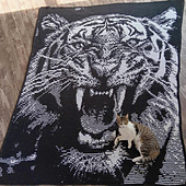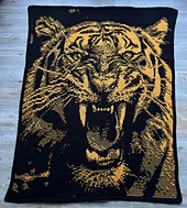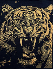 This is a pattern (US English, Dutch and German included) in Overlay Mosaic, creating a blanket with the image of a Roaring Tiger.