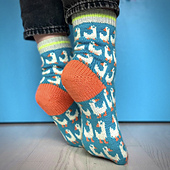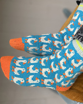 Sometimes we just need to wear some silly and playful socks on our feet to brighten up a tough day. These Silly Goose socks should help you or your loved ones do just that with their funny looking geese (or ducks! - whatever you prefer!) all over the socks. Knit in many different bright colours, they are sure to help cheer you up and only slightly, affectionately insult you with their title! Because for certain, anyone who can knit colourwork socks is not a silly goose.