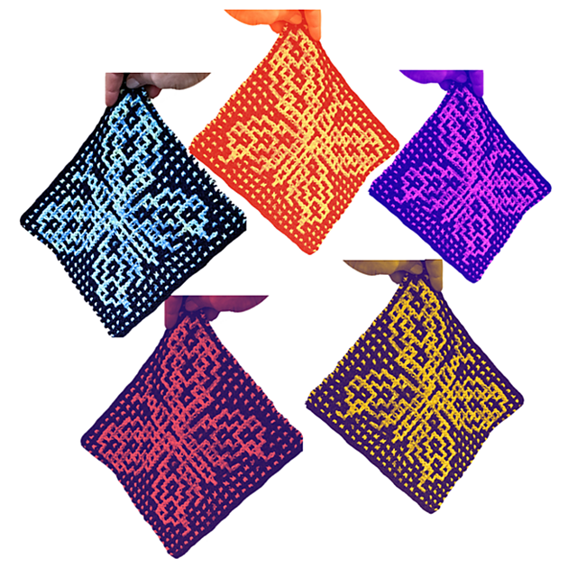 Mosaic colorwork washcloth (made in Aran / 10-ply weight yarn) brightens your bathing or washing rituals. It makes a lovely, quick, easy gift and looks beautiful.