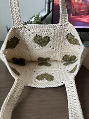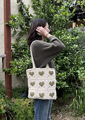 Crochet a super cute heart granny square tote with this free pattern! This crochet bag uses a previous pattern of mine for the heart granny squares. It has a total of 18 squares (9 per side) and they are stitched together rather than sewn. The straps are reinforced to prevent stretching and are also stitched to the bag.