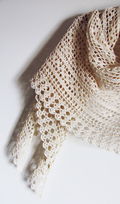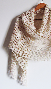 Daisies & Bees is a triangular shawl worked top-down in a filet crochet technique. Solid colors work best to show off the stitch pattern.