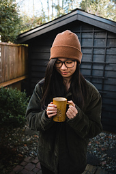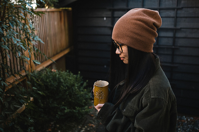 This basic knit hat is an homage to early mornings with family. Two layered hat, two ways to wear it, two creams, two sugars.
