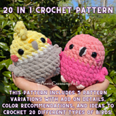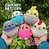 Create your own Birdie Friend plushies using my crochet pattern! This is a digital download of a PDF file with step by step photos of detailed parts of the pattern, material list, detailed explanations, crochet diagrams, and tips for selling plushies/making videos.