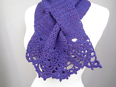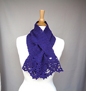 An open lace edging adds a charm to this keyhole scarf, one end pulls through the slit in the other end for a comfortable stay-in-place scarf.