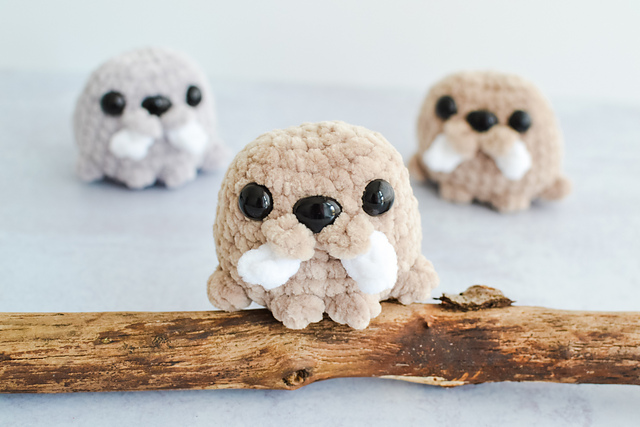 This chenille plush No-Sew Pocket Walrus crochet pattern is the perfect amigurumi project for sea lovers.
