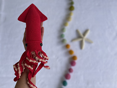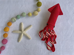 SIZE: Using DK weight yarn and a 3.00mm crochet hook, this crochet squid will end up being about 18" from the top of his mantle to the tip of his tentacle.