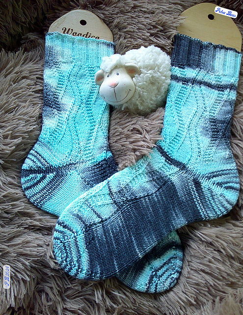 Die Anleitung ist nur für das Muster. Bündchen, Ferse und Spitze können nach Belieben gestrickt werden.