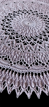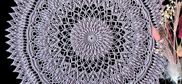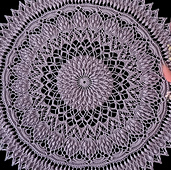 Your tension will determine things like hook size, yardage, finished size, and height of stitches. Any of these things can be adjusted as needed. Using recommended thread and hook this pattern will use minimum 500 yards / 480 metres of thread. And your finished doily will be about 17” / 45 cm in diameter.