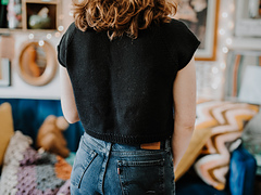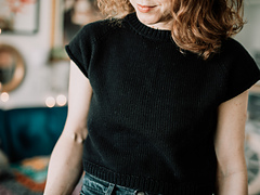 The Little Black Tee (LBT) is a simple, yet elegant cap sleeve, cropped tee with distinct raglan seams and purl bump finishes along the collar and hemlines. The LBT is slightly cropped to sit just at the waistband of a pair of high-rise trousers or jeans.