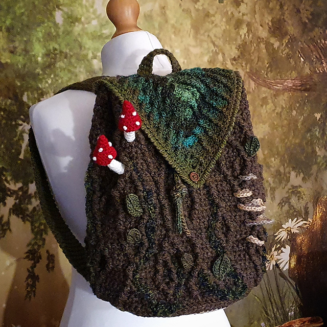Create a whimsical and fantastical Bark Backpack for yourself with this highly detailed 17 Page pattern packed with photos, instructions and charts!