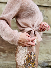 Now, the resting stitches for the sleeves are picked up and the sleeves are finished in stockinette stitch in the round. Shortly before the cuffs are worked in double knitting, there are a bunch of decreases for a balloon-like sleeve-shape. Finally, snap fasteners are attached to the double knitted hems to the inside of the cardigan.