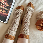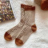 Toe up socks with lace and cables pattern, afterthought heel with the gusset, shaped toe.