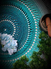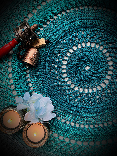 This pattern is your friend if you like a challenge in crochet stitches and texture. Feng Shui is based on the art of zen gardening, practiced by many Buddhists and something I first encountered in real life during my travels through Japan. The most beautiful lines and shapes are formed with a hoor in the gravel. Buddhist monks or carekeepers of temples often spend hours creating perfection in those gardens and you will see a result where it seems a natural pattern is created by nature as no footstep is left behind. It has been a great inspiration for me to watch this in real life and so this mandala was created. It will take you hours to complete and needs your entire focus—a meditative process similar to the art of zen gardening.