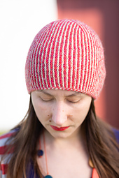 This short row hat begins with a provisional (winding) cast on, and is worked from side to side, with a slipped stitch edging.