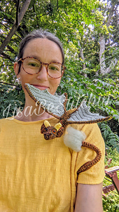 Yardage: this will vary based on how long you make your dragon but a long neck / long tail version will require about 50-60yds (including wing edges).