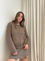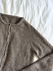My Dream Cardigan är en ganska minimalistisk, men ändå detaljerad kofta. Den stickas runt, uppifrån och ner med sadelaxel, för att sedan klippas upp (steekas). Den har en mer avslappnad passform vid bålen och en smalare ärm som formas med minskningar. Bålen och ärmarna avslutas med en dubbel rullkant,
