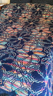 Het patroon is in grootte aan te passen naar eigen wens., de basis is 90 steken en 93 rijen. Hier kun je per 90 steken en 90 rijen herhalingen aan toevoegen.