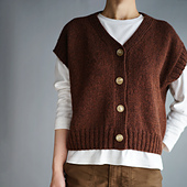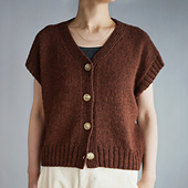 To start, the back shoulder is worked, with short-row shoulder shaping, to the underarm. Stitches for the front are picked up from the back shoulders, and both of the fronts are worked flat while shaping the neck, and joined to the back at the underarm, to be worked seamlessly to the hem. The armhole borders are worked from stitches picked up around the armholes and worked in the round in ribbing. Finally, stitches are picked up along the fronts and neck and the 1x1 rib button band is worked as you go.