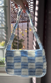 Requires 2 different color yarns for a checkered pattern. Can make a solid shoulder bag by skipping color changes!
