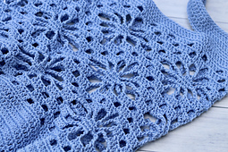 The Blue Sky Market Bag crochet pattern is an intermediate crochet pattern. The bag is worked all as one piece from the bottom up. It is generous in size. The open work design in the bag reminds me of Daisy flowers and is created using basic crochet stitches.