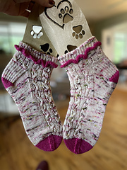 And for the first time, I have included three different mix and match cuff options. A Twisted Rib, Picot Folded, and Ruffle Cuff. Each cuff option works with each sock, and there are full picture tutorials included in the pattern.
