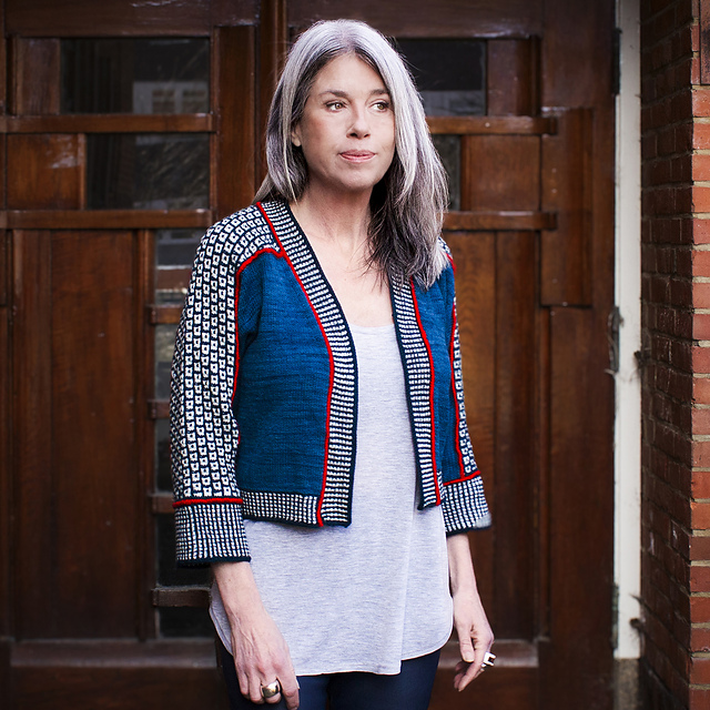 The Nexxus cardigan mimics the look and feel of these ancient techniques by using mosaic and slip stitch knitting. The elegant welts framing each section, add both aesthetic and structural depth to the design.