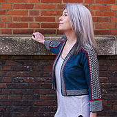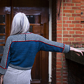 The construction of Nexxus is modular and seamless, starting from the center back with a cast on for the left shoulder piece. This piece is worked in the mosaic technique down to the sleeve cuff. Stitches for the second shoulder piece are then picked up from the cast on edge followed by working on the right shoulder piece.