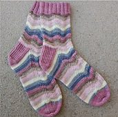 ***Note Please notice that the gauge is a bit looser than your average sock (8 sts=1”). The wave pattern makes the stitches a bit tighter. Make sure you account for that difference.***