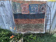 With 2 strands of yarn (Pound of Love, Scarfie) held together for all sections.
