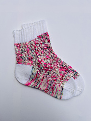 *These top-down socks feature a fun droplet stitch technique, producing textured details along the leg and top foot of the sock. This technique is ideal for variegated yarns because it creates little bursts of color when you work the droplet stitch technique. Choose a fingering weight color pop for the cuff, heel, and toe to coordinate with your main color. This pattern is ideal for showcasing those colorful collectible single skeins of sock yarn. Cast on and let your yarn shine!*