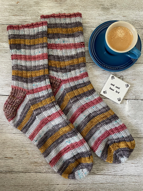 This version has no cuff but is knit in ribbing from the top down and results in a super snug and cozy sock. This pattern is definitely beginner-friendly or if you're an experienced sock knitter, it's a fun alternate to knitting vanilla socks1