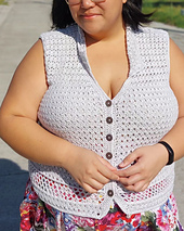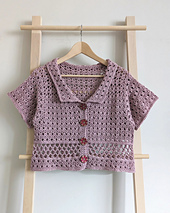 This top is made top down with the back panel first before the front left and right panels. Once you reach the required armhole size, these will be joined and made in turned rows to the end. After which plackets will follow and you have the option to make a collar or neckline edging and with or without sleeves. All these will be made directly onto the garment, hence the only sewing you need is for the buttons!