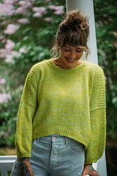 Oversized and comfy, this drop hem top is perfect for all the seasons! I’ve loved dressing mine up for date night, and then dressing it down for the weekend to snuggle into like my favorite worn-in sweatshirt. You can choose to stick with the short sleeves, or go for the longer sleeve version to suit your personal style! This pullover is knit from the bottom up, with a beautiful short-row curved hem and thoughtful shoulder details to accent the crew neck. The body is worked in the round until the divide for the yoke. The remainder is worked flat, and the shoulders are finished using the 3 needle bind off. The sleeves are then picked up from the body and knit in the round.