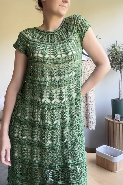 Introducing the Sicilia Dress, a beautifully crafted crochet pattern designed for comfort and style. This top-down crochet dress features a circular yoke and an oversized style that ensures maximum comfort and freedom of movement. Perfect for those who appreciate a relaxed fit with a touch of elegance, the Sicilia Dress is versatile enough for a casual day out or a special evening event.