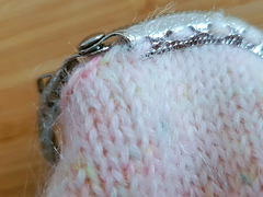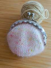 The Cottage Coin Pouch is worked in the round, starting at the bottom with a magic loop cast on. It's worked in one piece, then bound off, before being sewn into the metal frame.