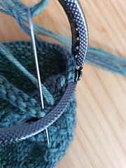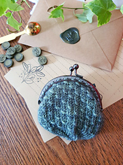 The Dragon Skin Coin Pouch is worked in the round, starting at the bottom with a magic loop cast on. It's worked in one piece, then bound off, before being sewn into the metal frame.