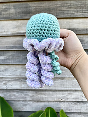 The No-Sew Jellyfish is an amigurumi pattern which, as the name suggests, does not require any sewing. All of the parts of the jellyfish are worked by attaching the yarn to the main body, meaning nothing has to be sewn together at the end. The only part that you will need a tapestry needle for is tucking in all of the yarn tails and embroidering on the smile. I know that sewing is many people’s least favorite part about crocheting, so this jellyfish avoids that aspect entirely!