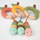 The clever design features an apple crocheted around the teething ring. A small, friendly worm can move in and out of the apple, adding a playful and interactive element.