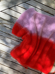 Modell 1 mit 4 Fäden ”Pearl Mohair” (210m/25g) in ”Lilac” und ”Poppy” von Majo