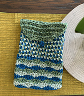 The Versatile Pouch is designed for your electronic devices or as a book pouch. This is a made-to-measure pattern and can be made with scrap yarn of any weight. The sample was made for a Tablet and using Aran weight (CYC#4) yarn.
