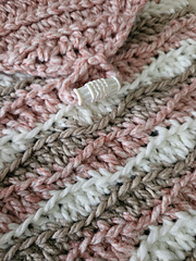 The pouch can be made in 2 or more colours. It is made in one piece - only the base needs seaming. The sample used a mix of Aran yarns in 3 colours. I used 3 colours of Aran wt yarn. with 20gms or less of each colour. (20gms/40mts/44yds)
