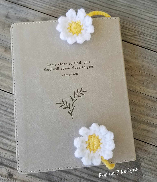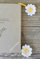 **Looking for a little something extra special to hold your place in your favorite book? Check out this super cute daisy bookmark. Use up any WW4/Aran/10Ply yarn scraps you have on hand to create this super cute and helpful accent. The length can be adapted for any size book too.**