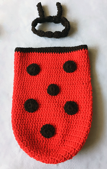 A snug little sleep sack/baby cocoon with matching antennae headband :) Enjoy and please link back to the project page if you like it!