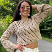 This feminine, soft, and lightweight crop top is an absolute joy to create, and it's perfect for advanced beginners. The pattern features a gorgeous stitch that drapes beautifully and looks incredibly elegant.