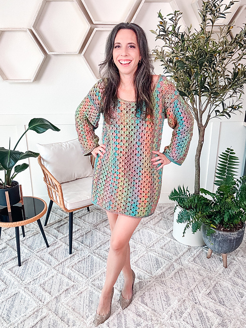 A stunning dress inspired by the iconic style of Taylor Swift! This pattern is perfect for both beginners and advanced crocheters. Featuring the timeless granny stitch that is not only visually appealing but also fun and relaxing to work with.